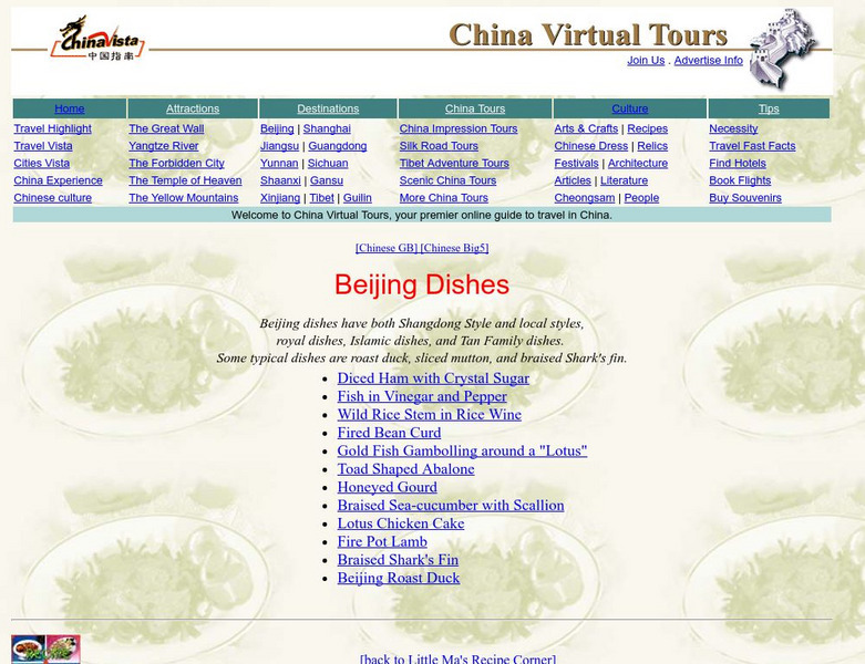Would you like to learn the secret to making Beijing Dishes? You will find many recipes here.