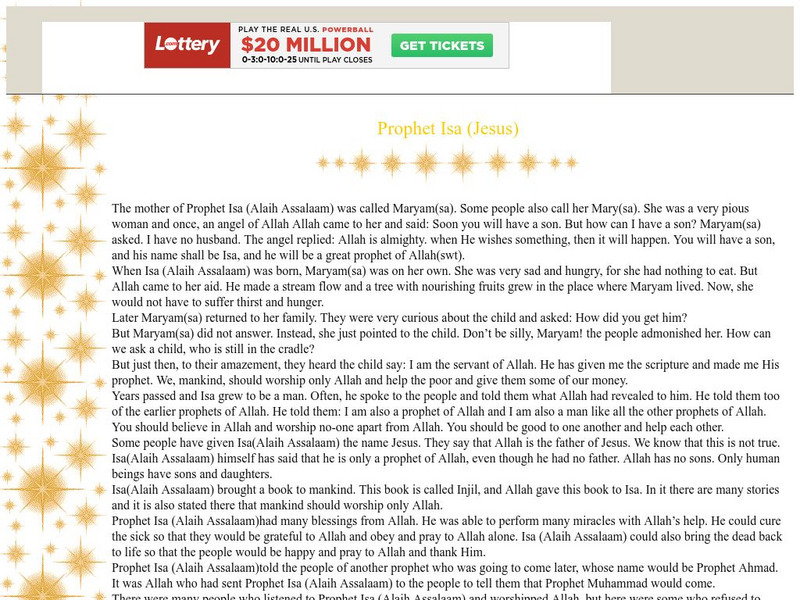 Discussion on the life and deeds of the prophet Jesus according to Islamic tradition and the Qur'an. Includes several quotes from the Holy Qur'an and is useful for comparative study of Christianity and Islam in terms of their opinions on...