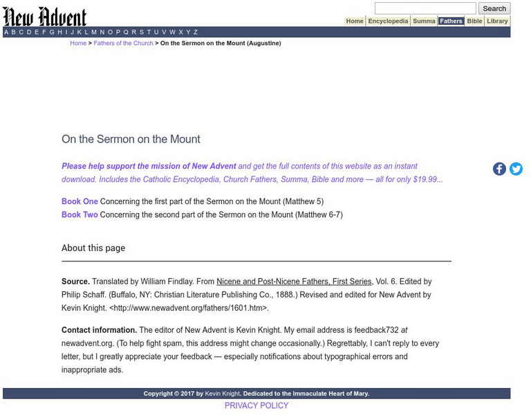 Two part analysis of The Sermon on the Mount. Very indepth and intellectual information given. Please note that ?The Catholic Encyclopedia? is a historic reference source and should be viewed in the context of resource material dated...
