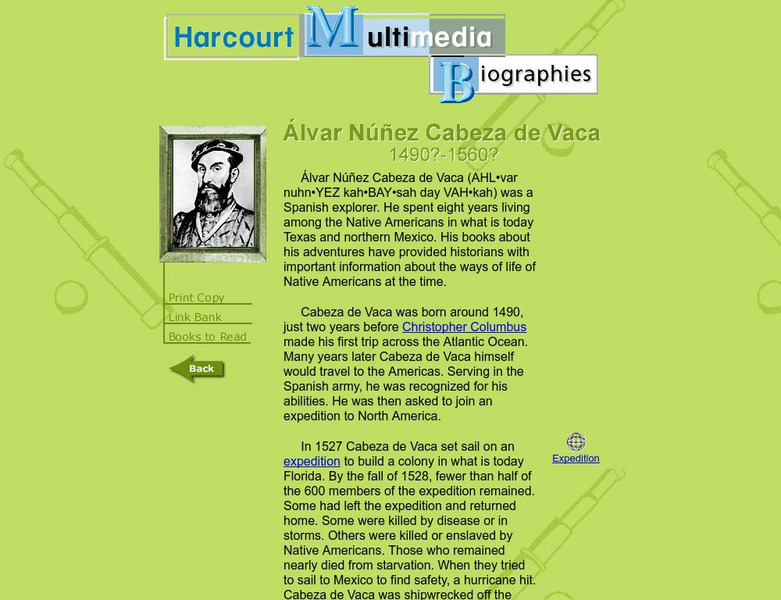 Harcourt: Biographies: Alvar Nunez Cabeza De Vaca