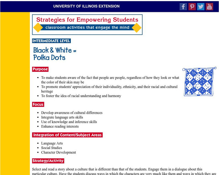 Use this site to focus on character education and building an understanding of diversity and cultural heritage. This excellent site provides classroom activity exercises for students in the primary, intermediate, and upper level. It is a...