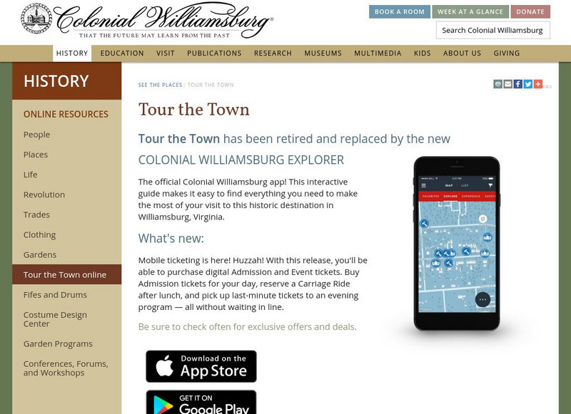 Take an interactive tour of Colonial Williamsburg to experience and explore The Revolutionary City and to see Colonial Williamsburg's modern properties. By clicking on a blue icon, you will get in-depth information on each point of...