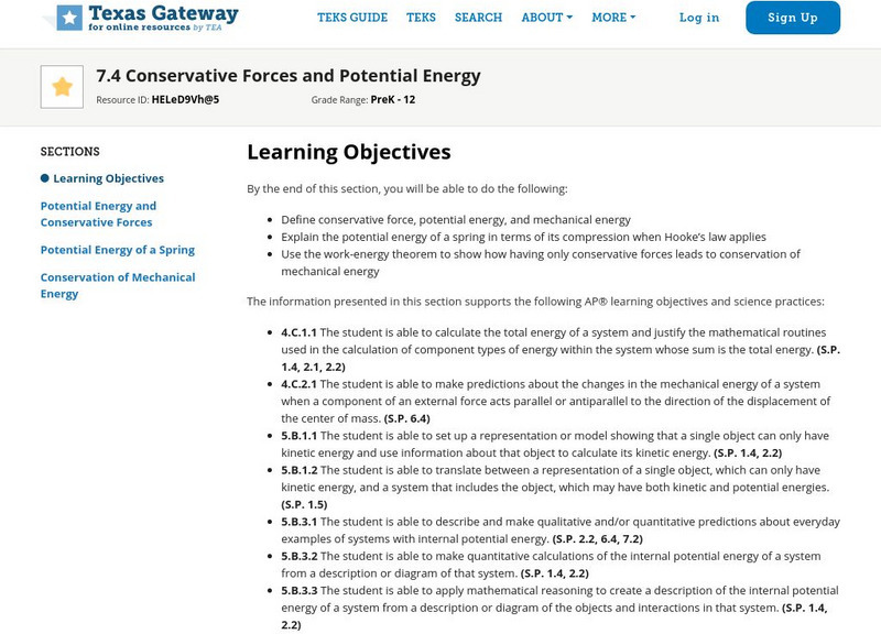 Texas Gateway: Ap Physics: Conservative Forces and Potential Energy