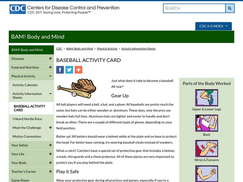 The Center for Disease Control and Prevention provides baseball information on the kind of equipment you will need to get started, how to play it safe, some fun facts, and a quick tip guide to help you hit, throw, and catch the ball.