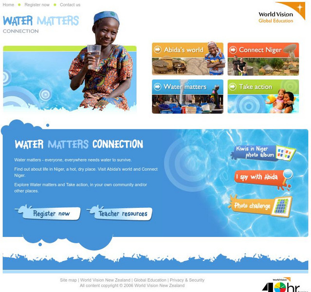 Become informed about the importance of the world's clean water availability through games, photo albums, photo puzzles, quizzes, online polls, and teacher resources.