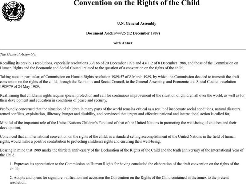 This site from the Human Rights Web is the United Nations Convention, passed in 1989, which outlines the basic needs and rights of children everywhere.