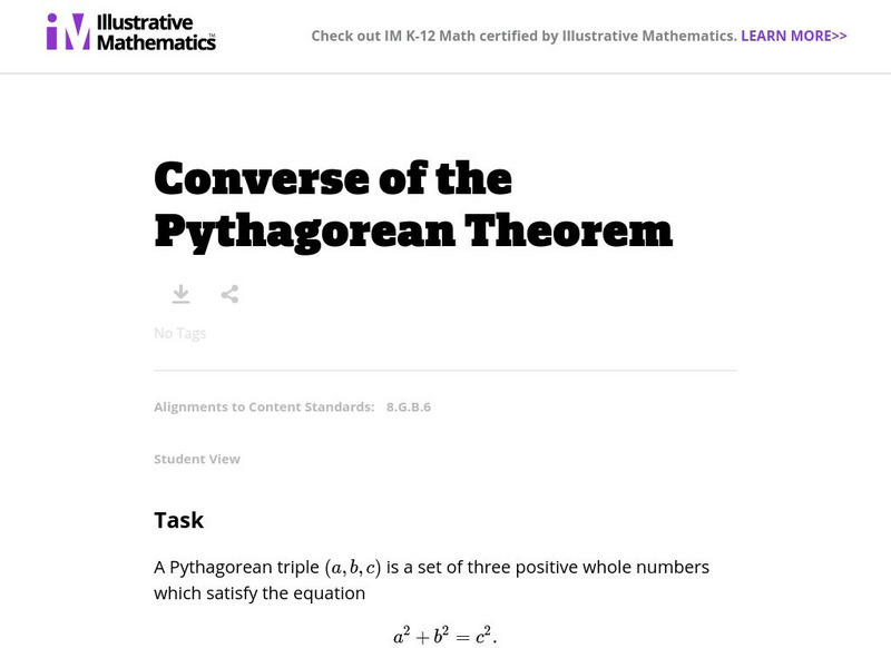 Illustrative Mathematics: 8.g Converse of the Pythagorean Theorem