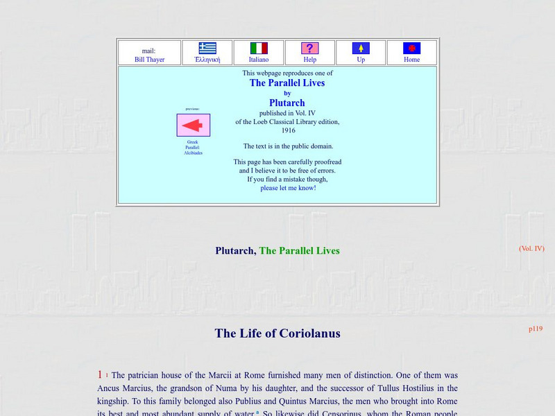 Read "The Life of Coriolanus" from Plutarch's "The Parallel Lives." With editor's notes and notes from the website publisher Bill Thayer.