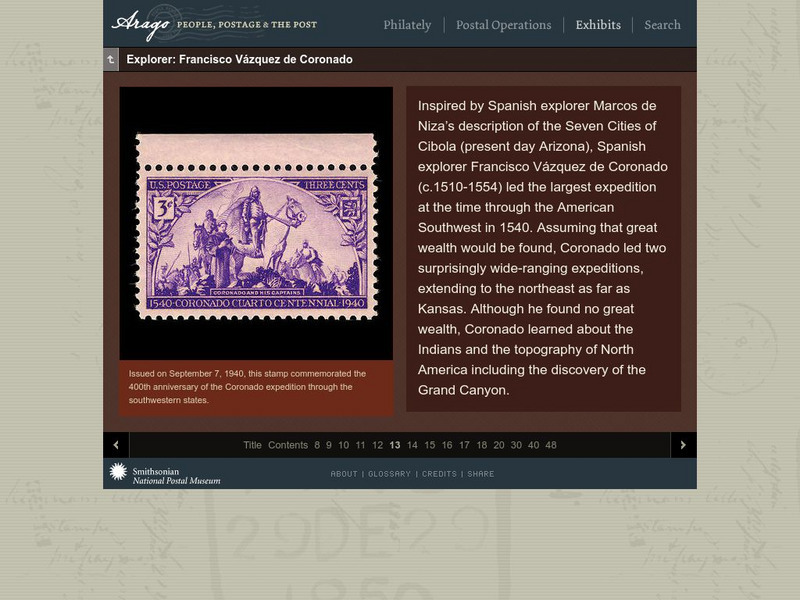 National Postal Museum: Explorer: Francisco Vazquez De Coronado Issue