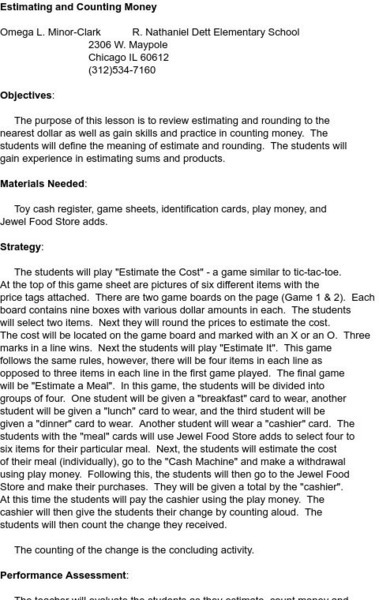 The purpose of this lesson from the Illinois Institute of Technology is to review estimating and rounding to the nearest dollar as well as gain skills and practice in counting money. The learners will define the meaning of estimate and...