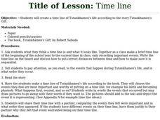 Students discover the look and purpose of timelines. After the teacher reads them a story, they discuss the events that occurred during King Tutankhamen's life. They create a timeline of his life making sure to put them in the correct...