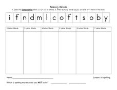 In this making words worksheet, students color the consonants yellow, cut out the letters, and make words with them. Students make 2 - 7 letter words.