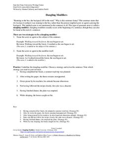 You don't want to leave your modifier dangling! Using this worksheet, you can help students on their way to understanding how to modify sentences and to eliminate dangling modifiers.