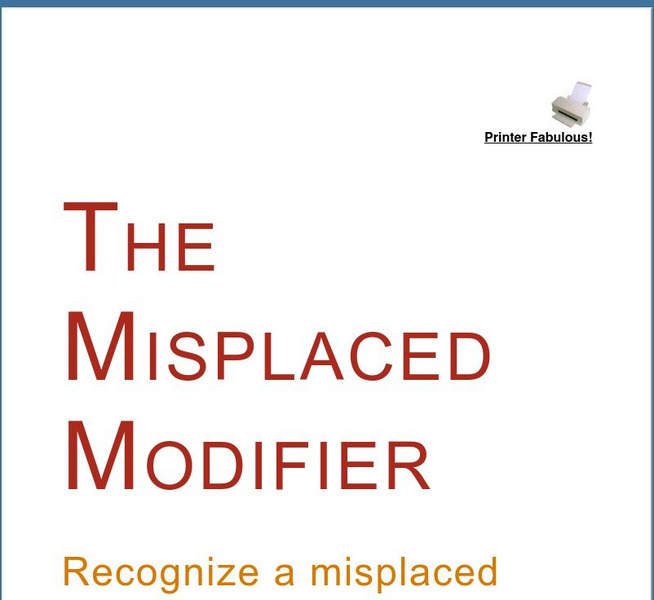 Printable information is provided that demonstrates how to identify a misplaced modifier in the context of a sentence.