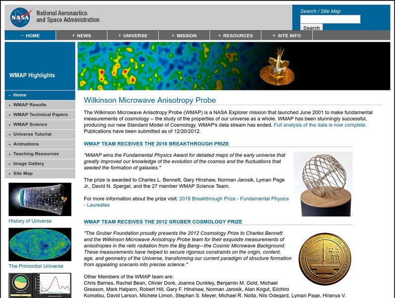 The WMAP is NASA's mission to make fundamental measurements of cosmology. The stream of information has ended and full analysis of the data will be continuing. Site provides the 7-year results and the top ten findings of the probe. 2010