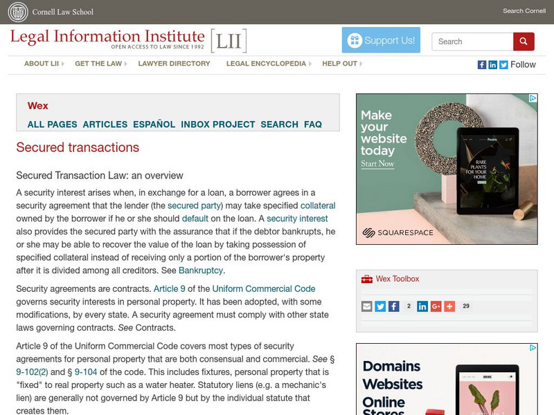The resource provides an overview of secured credit obligations. Article 9 of the Uniform Commercial Code is also described.