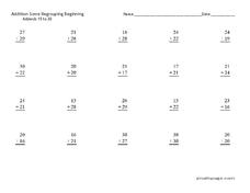 In this addition learning exercise, students solve twenty double digit addition math problems. Students write their answers on the learning exercise.