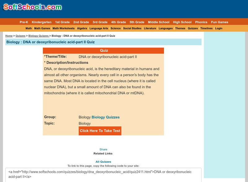 Soft Schools: Dna or Deoxyribonucleic Acid Part Ii Quiz