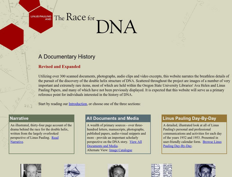 A great resource for the history of the discovery of DNA! This website includes over 300 documents, photographs, audio clips, and video excerpts that documents how the double helix structure was discovered.