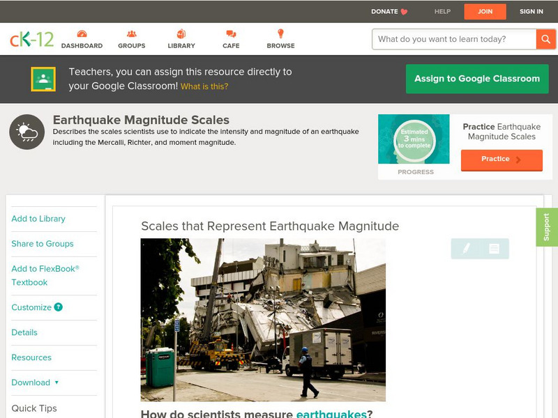 Ck 12: Earth Science: Scales That Represent Earthquake Magnitude