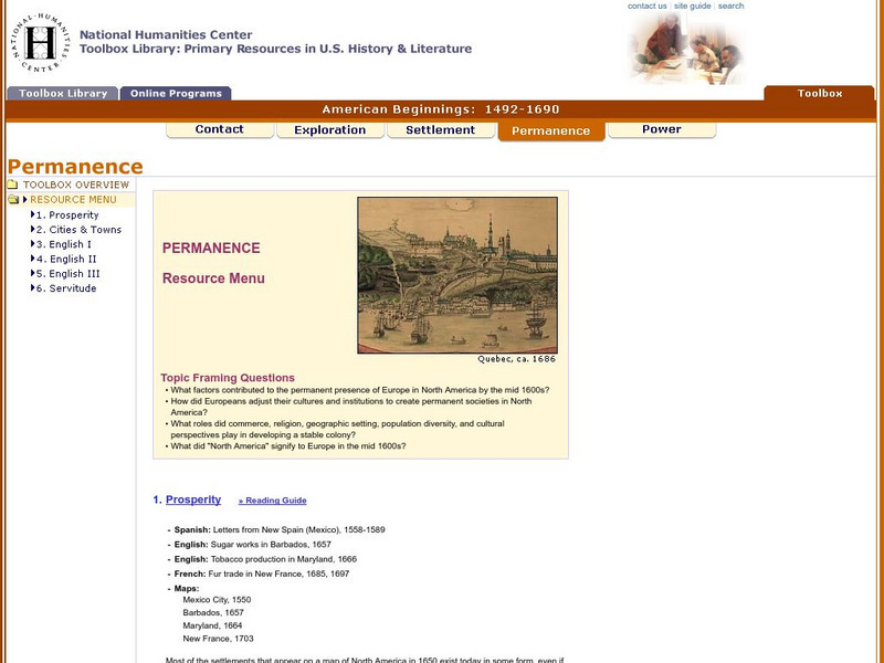 National Humanities Center: Toolbox Library: Permanence, American Beginnings: 1492 1690