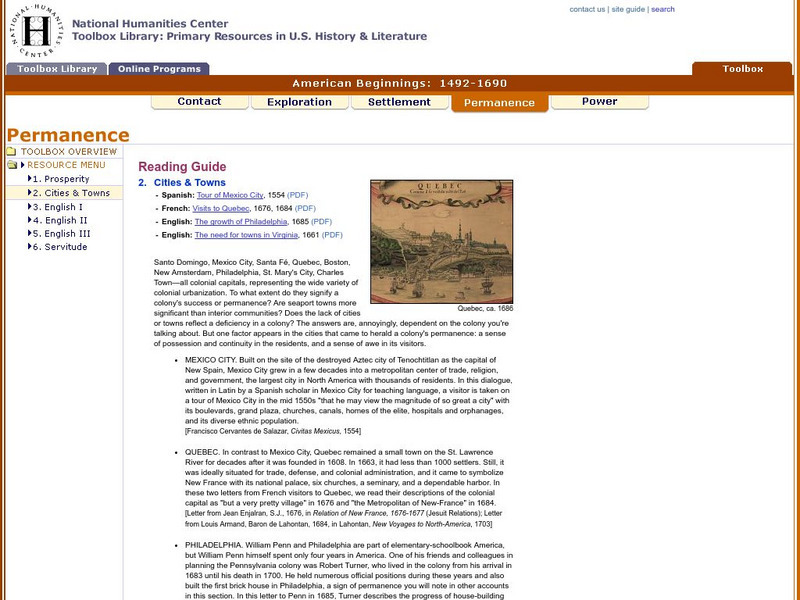 National Humanities Center: Toolbox Library: Cities & Towns, American Beginnings: 1492 1690