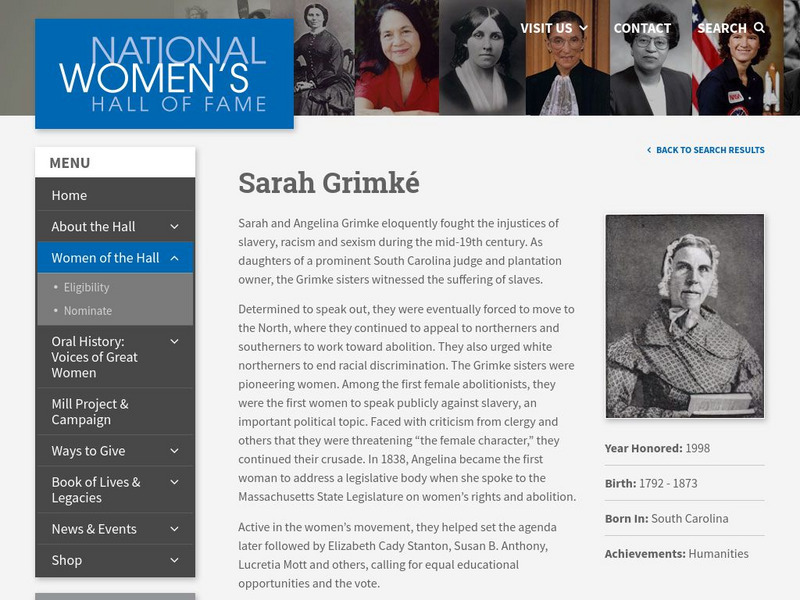 National Women's Hall of Fame: Sara Grimke