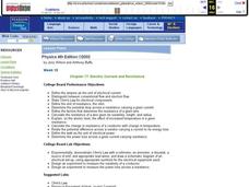 Students are introduced to the topics of electric currents and resistance. In groups, they distinguish the difference between conventional and electron flows and state Ohm's Law for electrical components. They calculate the resistance of...