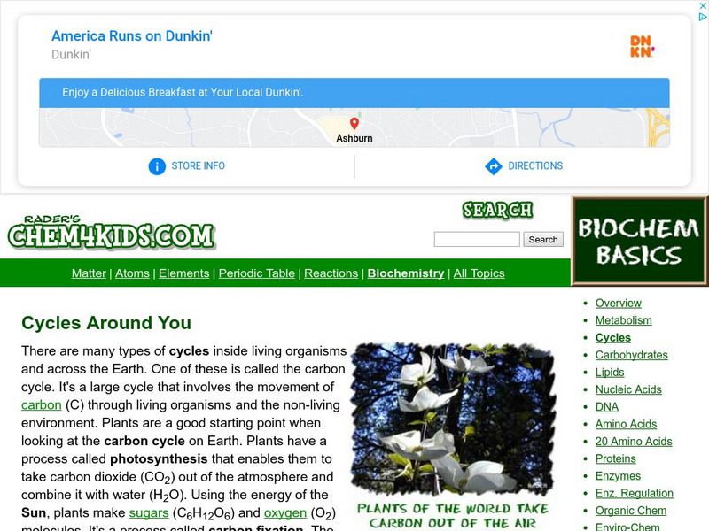 There are many cycles occurring in all of the Earth's organisms, including the Earth itself. This brief page highlights some of those cycles, making readers aware of how many cycles there are, big and small.