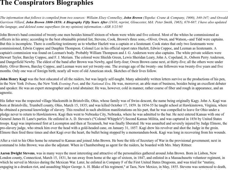 John Brown and the Valley of the Shadow: The Conspirators' Biographies