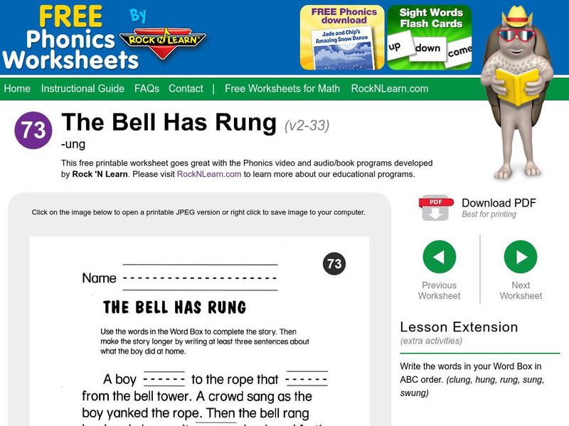 This printable consonant blends worksheet from Rock 'N Learn can be used as a reinforcement activity or as an assessment. Students will add form -ung consonant blend words that will complete a paragraph. An answer key and lesson...