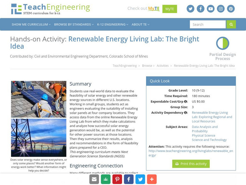 Teach Engineering: Renewable Energy Living Lab: The Bright Idea