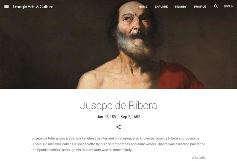 This visual website from Google Cultural Institute shares background information and photos about Jusepe de Ribera.
