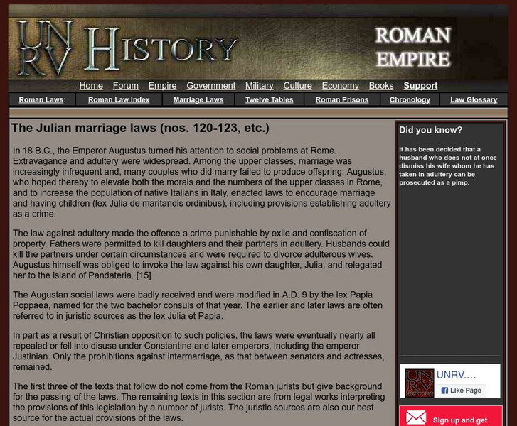 In 18 BC, the Emperor Augustus turned his attention to social problems at Rome, one of which was adultery among the upper classes and that many couples who did marry failed to produce offspring because their romantic lives took...