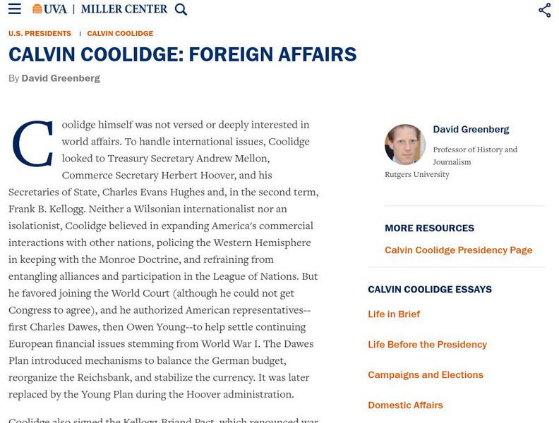 Miller Center at Uva: u.s. Presidents: Coolidge Foreign Policy