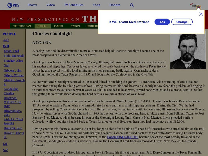 Charles Goodnight (1836-1929) was one of the most prosperous cattleman of the American West. Read a thorough biography about him here at this site.