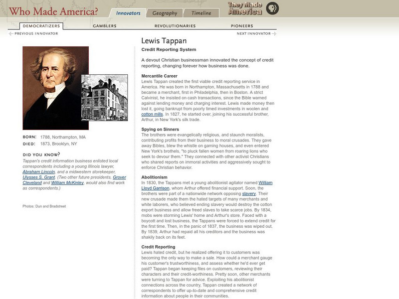 Pbs: Who Made America?: Innovators: Lewis Tappan