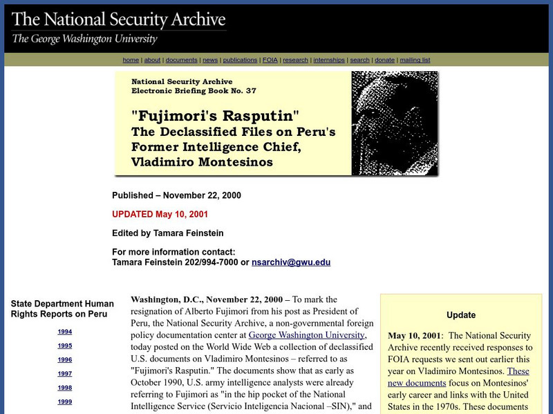 To mark the resignation of Alberto Fujimori from his post as President of Peru, this resource contains declassified files on Peru's Former Intelligence Chief, Vladimiro Montesinos.