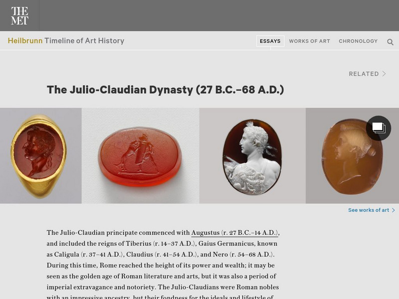 This site from the Metropolitan Museum of Art in New York contains wonderful information on the Julio-Claudian dynasty. Pictures are provided along with a somewhat in-depth text that contains links for additional information. This is a...