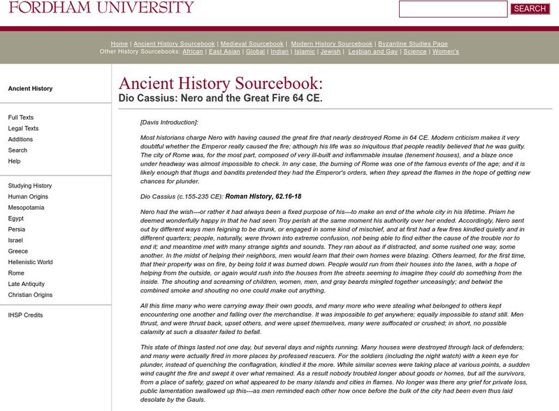 Fordham University: Ancient History Sourcebook: Nero and the Great Fire
