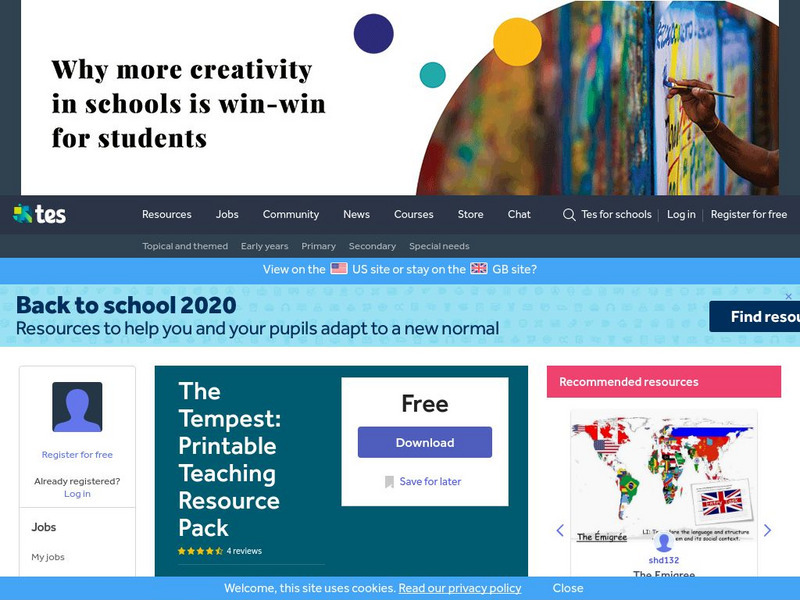 [Free Registration/Login Required] In this teaching resource, students will learn about the synopsis, background, and actors of the National Theatre's production of The Tempest. Reading and writing lessons are included in this resource.
