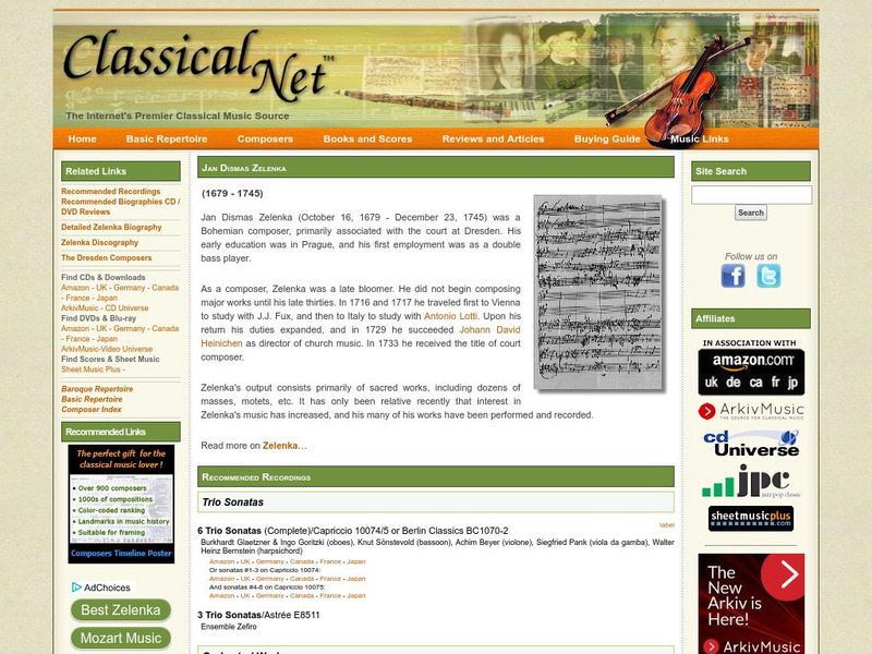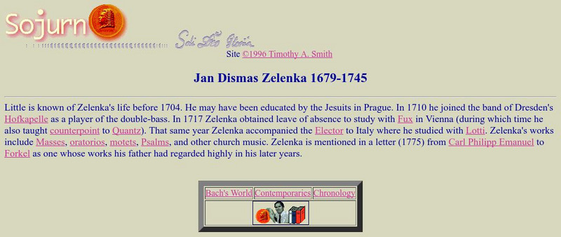 Brief biographical facts about Zelenka with lots of links to terms as well as references to Zelenka's music.