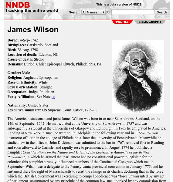 A short but detailed biography of this delegate to the Constitutional Convention from Pennsylvania. Wilson later served as a U.S. Supreme Court Justice.