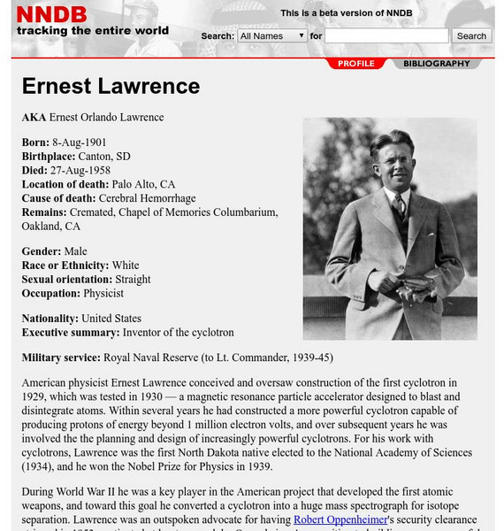 Homepage of NNDB, a site to turn to for discovering biographical data of folks of popular significance around the world.