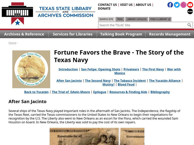Texas State Library and Archives Commission: The Texas Navy: After San Jacinto