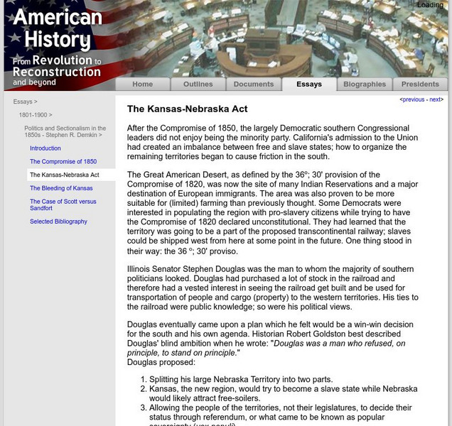 American History: Essays: Politics and Sectionalism: Kansas Nebraska Act