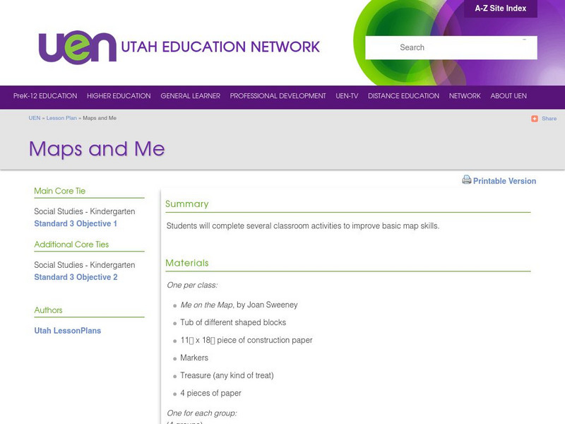 Lesson to reinforce basic map skills. Young scholars discuss Me on the Map by Joan Sweeney, work in groups to create maps of the classroom, and use these maps to hunt for treasure.