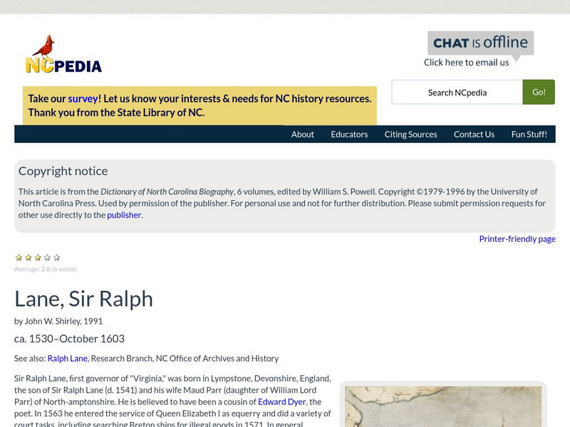 N Cpedia: John W. Shirley: Sir Ralph Lane