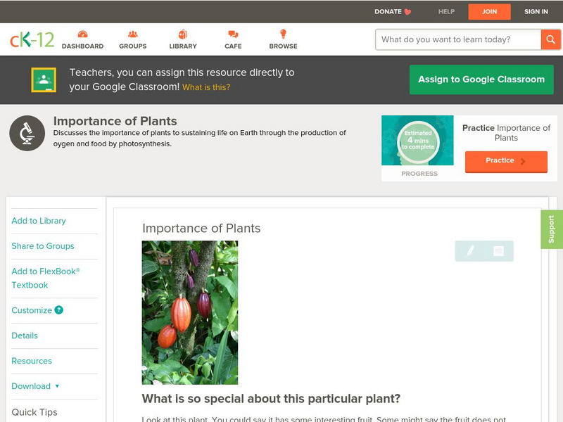 Ck 12: Biology: Importance of Plants