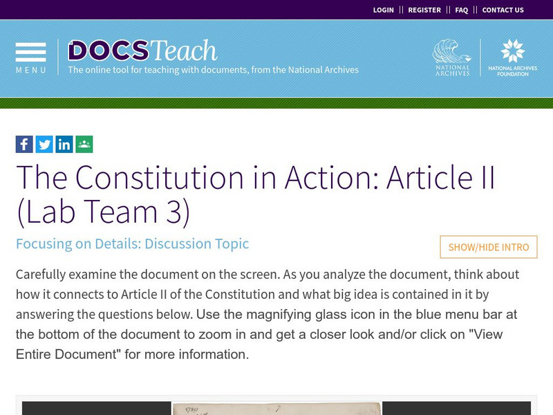 Docsteach: The Constitution in Action: Article Ii (Lab Team 3)
